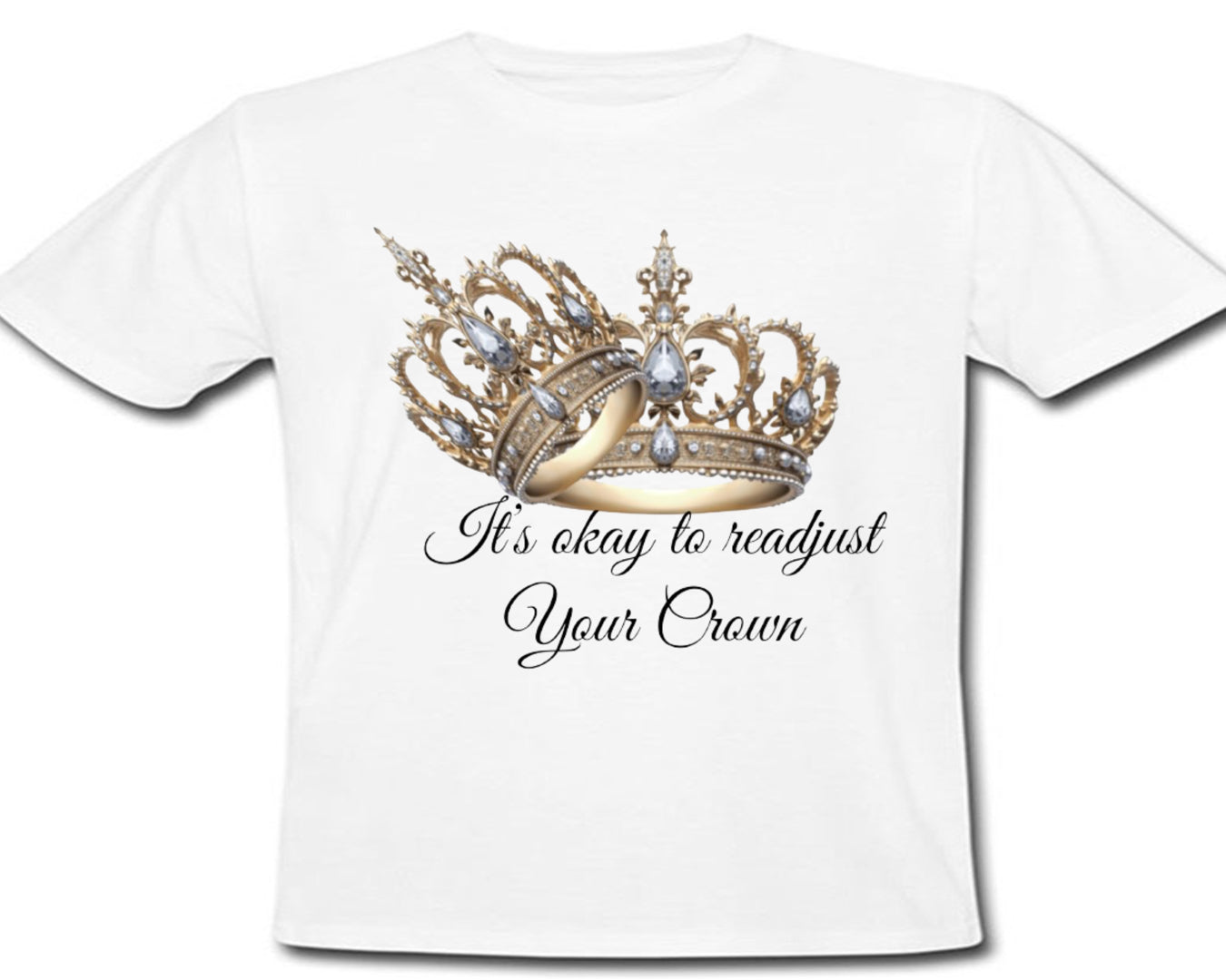 Crafted from high-quality, soft cotton, this t-shirt is not only comfortable to wear but also serves as a statement piece that celebrates the wearer's inherent worth and resilience. The design is a reminder that it's perfectly acceptable to take a moment to readjust one's metaphorical crown, whether that means reclaiming confidence, refocusing priorities, or simply honoring one's own worth and resilience.
